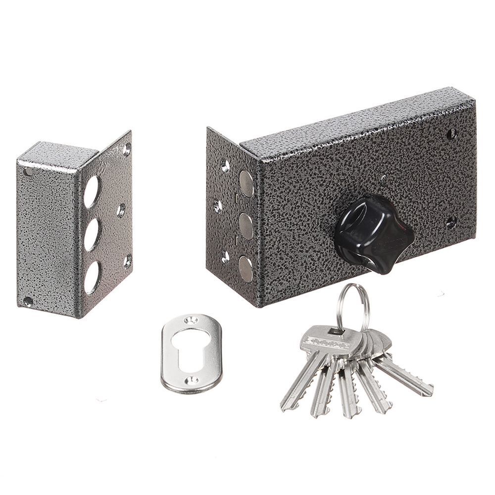 Комплектация - 5 ключей, запорная планка, накладка. Механизм замка под английский ключ, идет совместно с корпусом. Закрывание и открывание замка изнутри производится вертушкой, снаружи ключом.