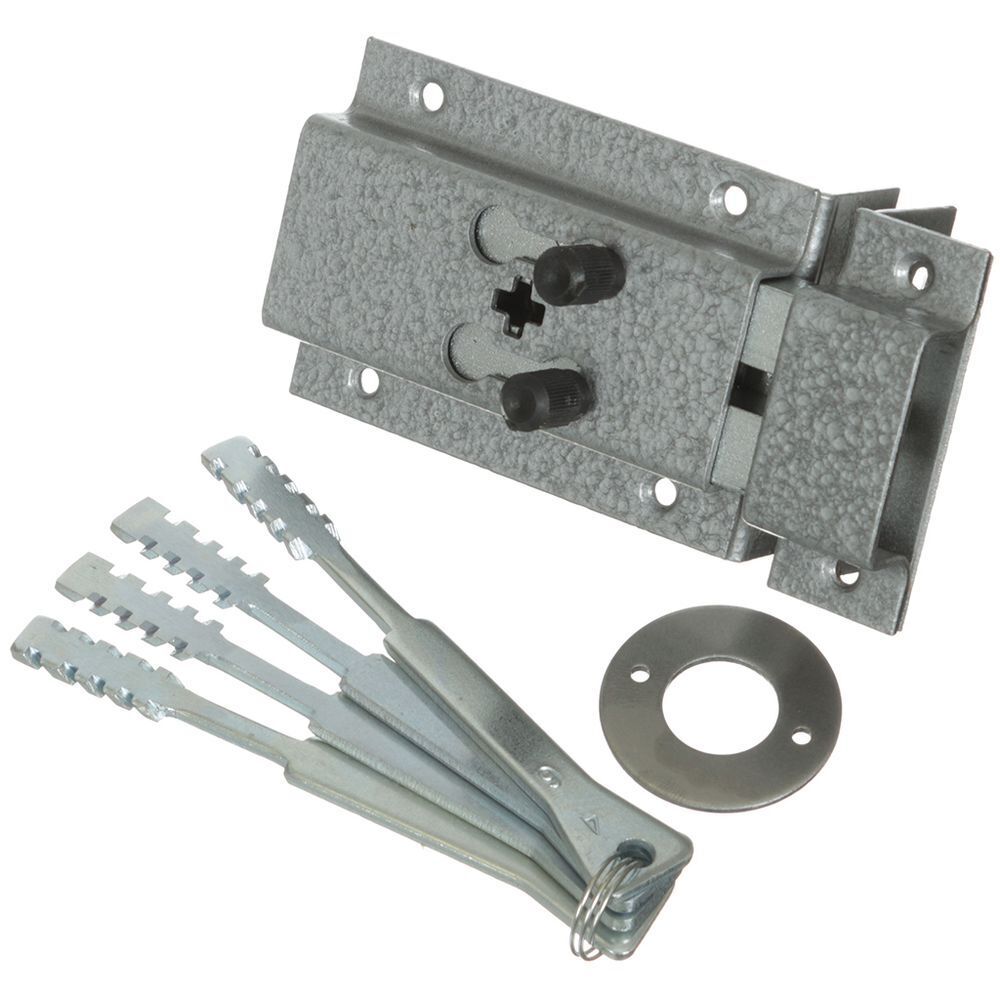 Бюджетный накладной замок Делга-КОМАЗ-ОХК на основе реечного механизма. Используется для закрывания гаражей, сараев на дачном участке и для дополнительной защиты от проникновения посторонних лиц.