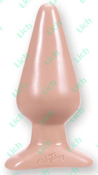 Анальная пробка из гладкого телесного ПВХ высотой от основания 14 см и максимальным диаметром 5,7 см. Большой диаметр пробки подходит опытным любителям анального секса.