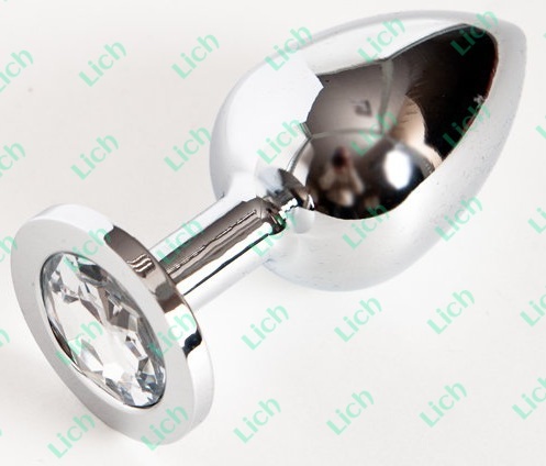 Большая серебристая анальная втулка с прозрачным кристаллом