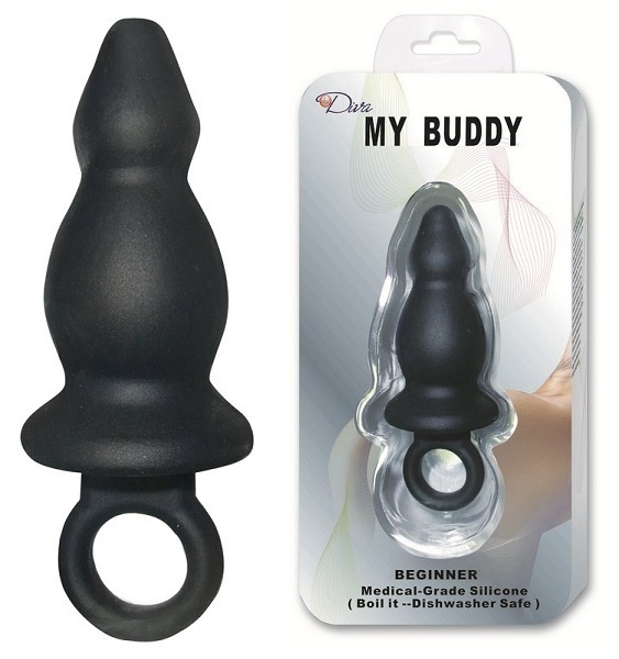 Черная анальная втулка из силикона с кольцом