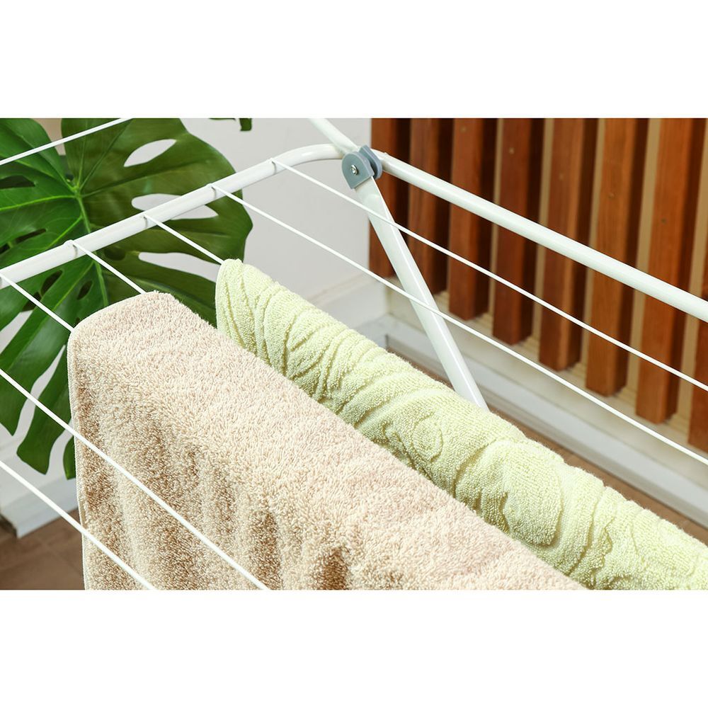 Классическая напольная сушилка для белья подходит для использования в любых помещениях. Сушилка имеет удобную складную конструкцию.