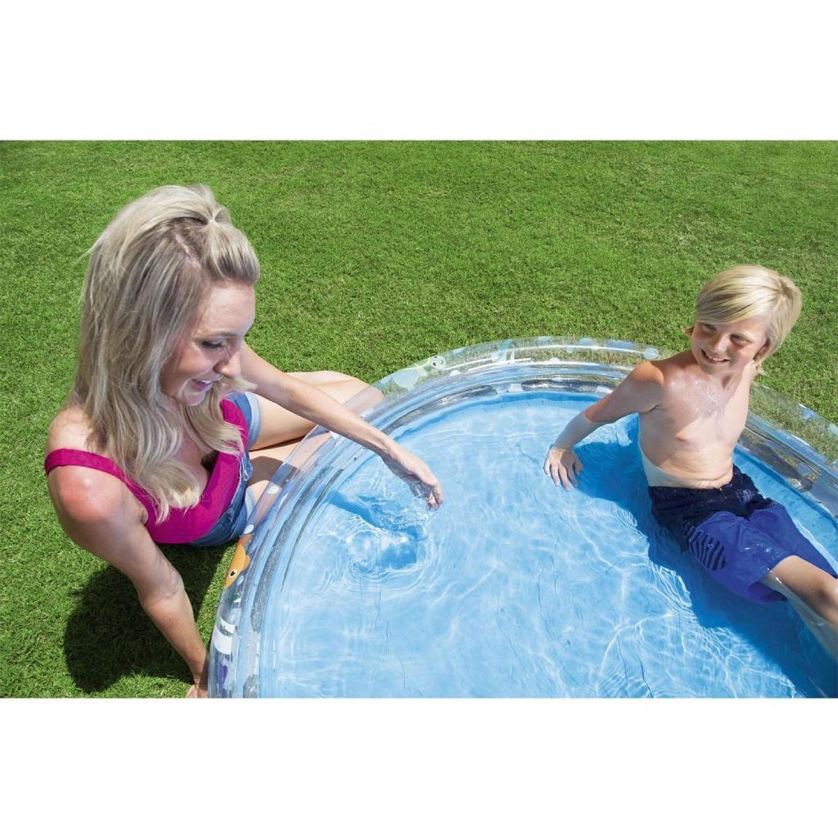 Бассейн быстро надувается и устанавливается на любой ровной поверхности.
