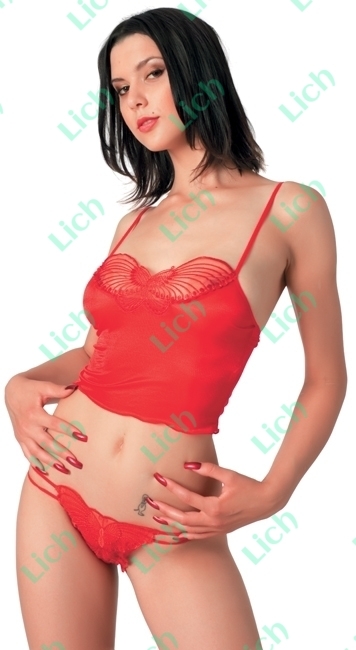 Если велико желание доставить мужчине райское удовольствие, этот комплект во многом вам поможет. Надев полупрозрачную маечку и трусики-стринг, вы за считанные секунды приведете любимого в состояние полной боевой готовности. Яркие аппликации также выглядят многообещающе – он сразу поймет, что сегодня ваши прикосновения будут нежны подобно взмахам крыльев бабочки. Комплект из прозрачного нейлона и аппликации в виде бабочки на груди и трусиках-стринг. Бретельки регулируются.