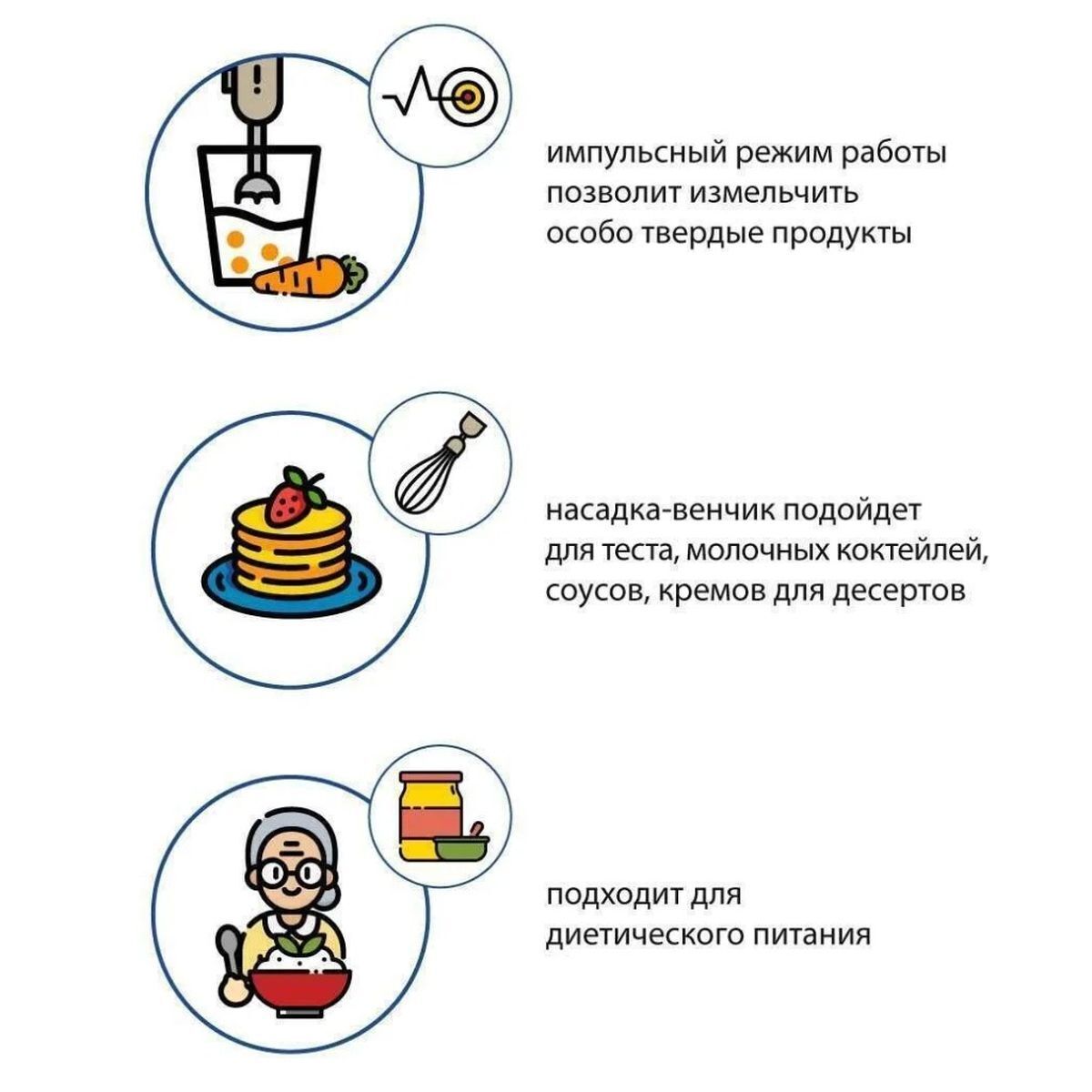 Комплектация: блендер, съемная насадка-венчик, мини-измельчитель, мерный стакан, руководство по эксплуатации, гарантийный талон.