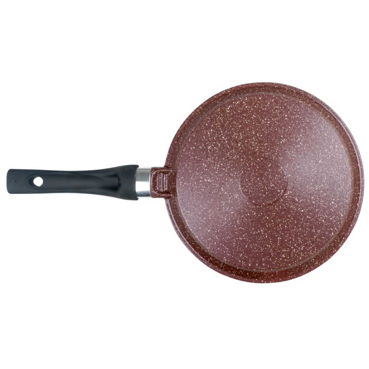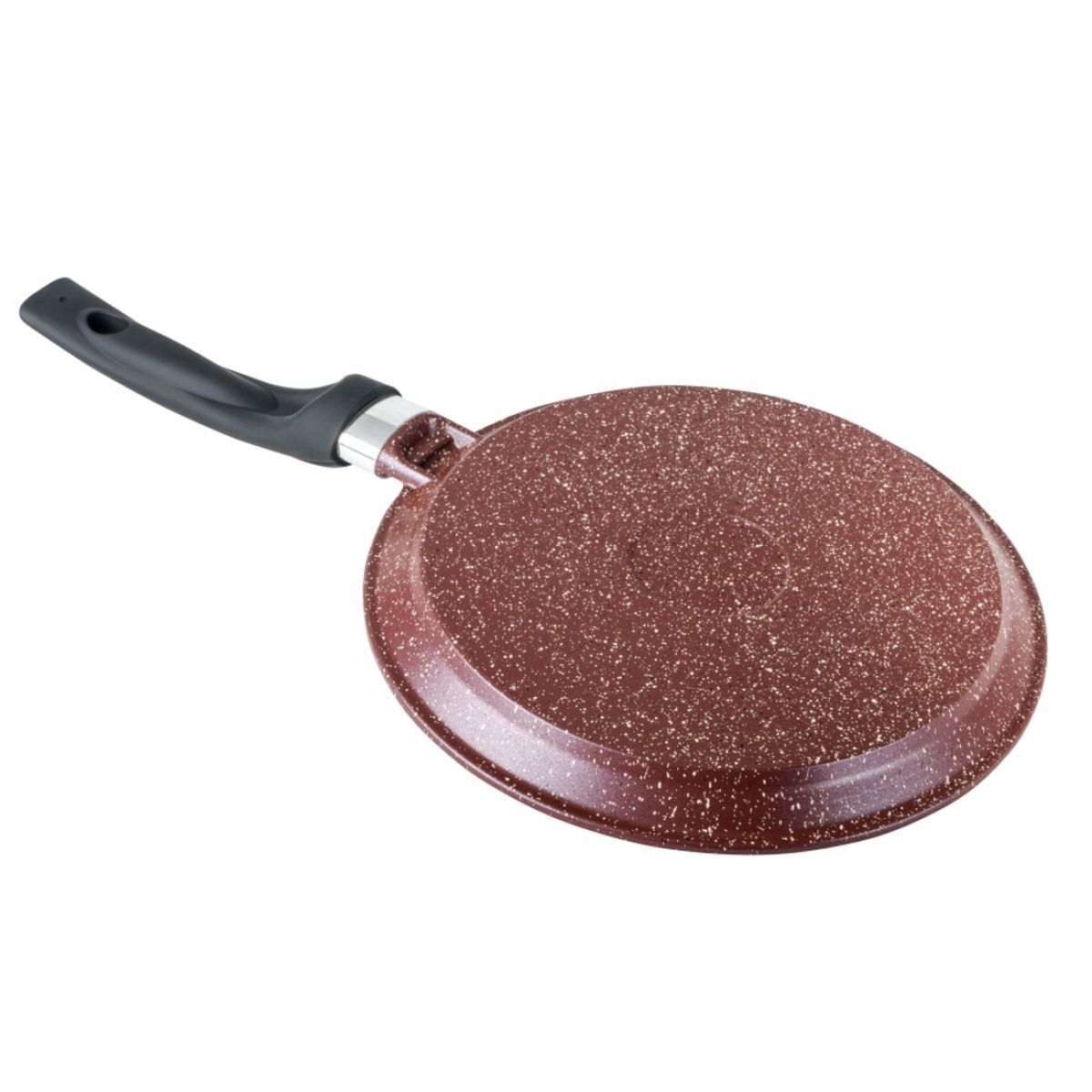 Удобная бакелитовая ручка не нагревается. Блины удобно снимать благодаря низким бортам, расположенным под острым углом по отношению ко дну.