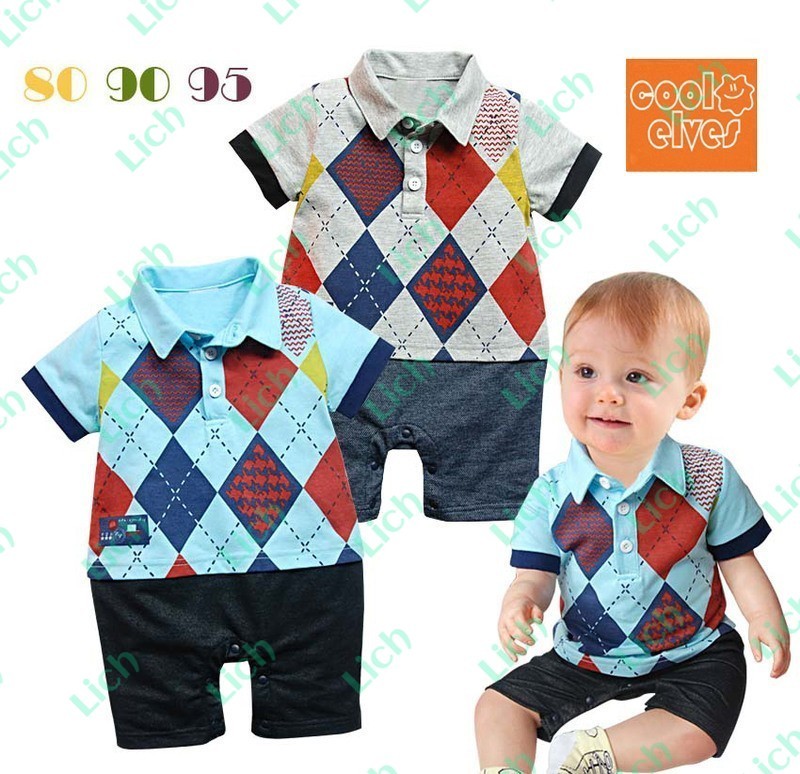 Песочник детский: футболка-поло с ромбами и однотонные штанишки