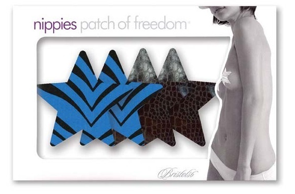 Чтобы выглядеть эффектно, нужны лишь две вещи - откровенный наряд (с глубоким вырезом или полупрозрачный) и эти яркие пэстис-звёздочки. Наклеив их на грудь, вы сокроете от посторонних глаз то, что должно быть скрыто. При этом змеиный рельеф или черные полоски на синем фоне привлекут внимание к красоте вашего тела. В комплекте: 2 пары пэстис, 2 тестовых мини-пэстис, 4 защитные накладки для сосков.