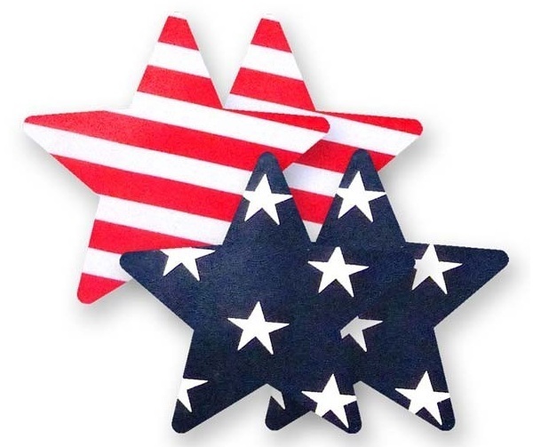 Сегодня в тренде любая одежда и аксессуары в духе американского звездно-полосатого флага. Именно поэтому, если на вашем бюсте красуются эти пэстис (белые полоски на красном или белые звёзды на синем), вы выглядите стильно и модно. Надеть такую красоту можно под любой полупрозрачный наряд синего, белого или красного цвета. Успех гарантирован! В комплекте: 2 пары пэстис, 2 тестовых мини-пэстис, 4 защитные накладки для сосков.
