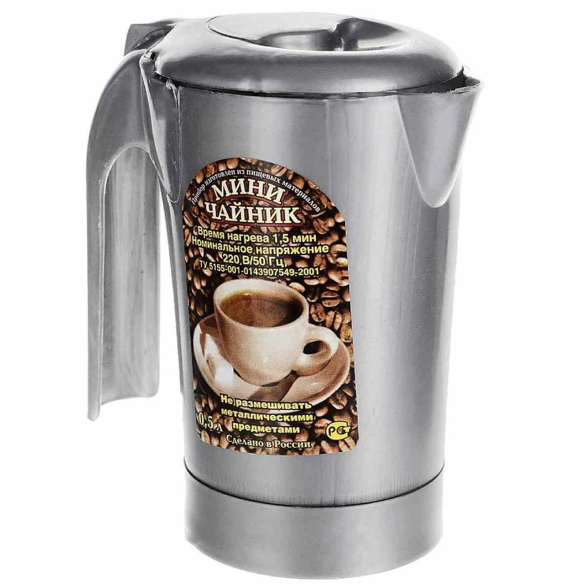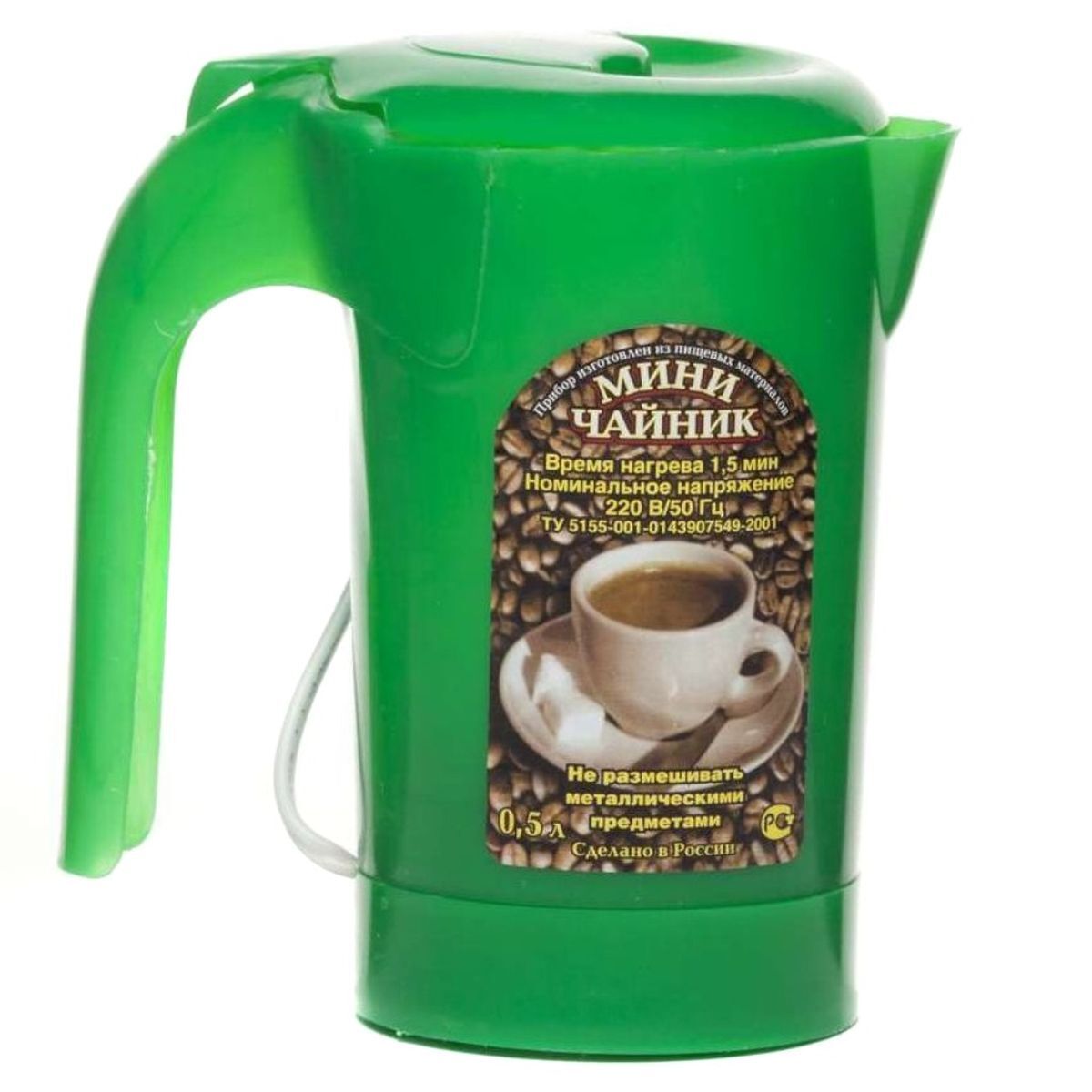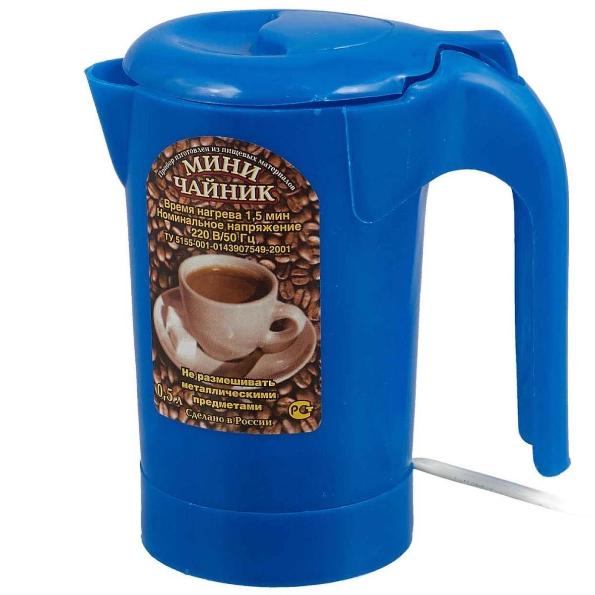 Корпус электрического мини чайника выполнен из качественного термостойкого пластика, нагревательный элемент из нержавеющей стали. Благодаря этому электрочайнику Вам не нужно ждать, пока вода закипит на плите чайник сделает это всего за несколько минут. Такой маленький и легкий чайник всегда пригодится и дома и на даче и в поездке.