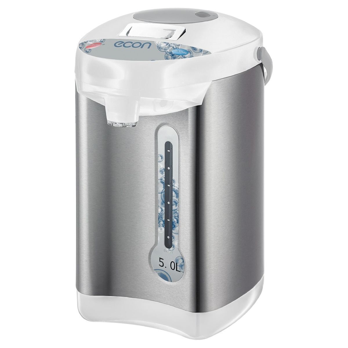 Термопот Econ Eco-500TP оснащён электронной системой управления. После нагрева он автоматически поддерживает требуемую температуру, обходясь минимальным энергопотреблением. Устройство также предлагает функцию повторного кипячения, помогающую продезинфицировать воду и уменьшить уровень жёсткости.