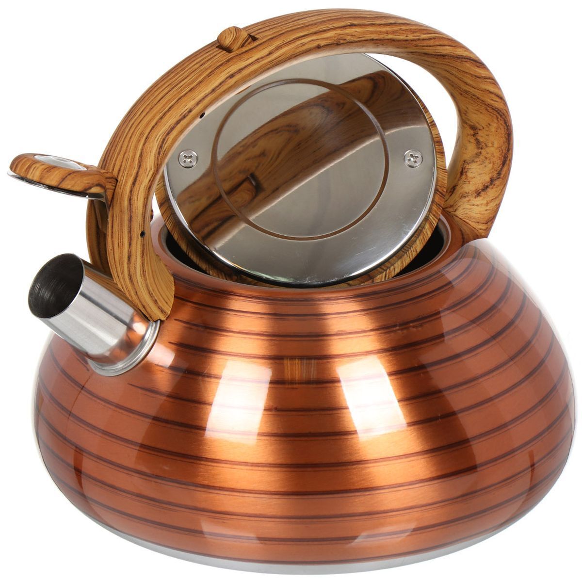 «Чайник нержавеющая сталь, 3 л, со свистком, зеркальный, ручка с силиконовым покрытием, Daniks, индукция, коричневый, DSC-8797» можно купить мелким, средним и крупным оптом по привлекательным ценам благодаря тому, что мы сотрудничаем с российскими и международными производителями напрямую, без посредников.