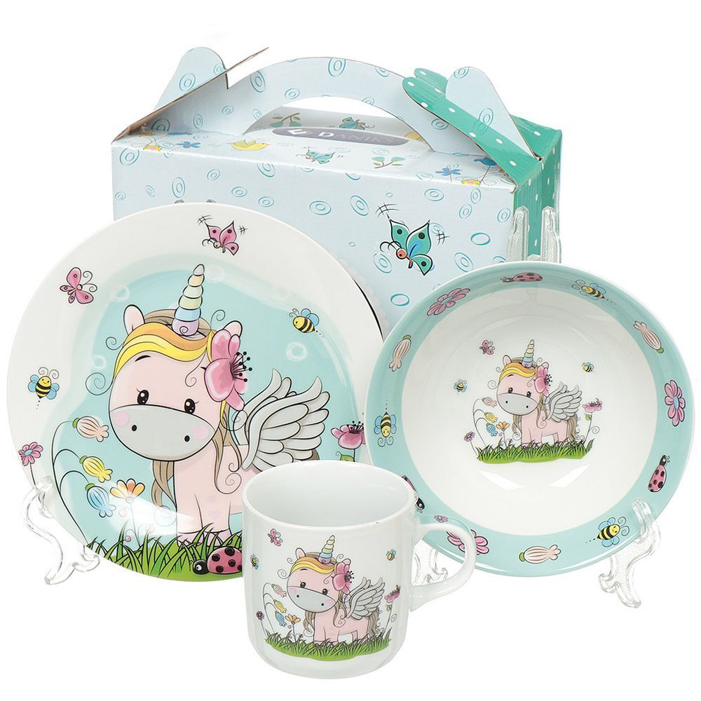 Набор посуды керам, 3 шт, Единорог, тар 17,5см,сал 15см,круж 230мл, Daniks, C518