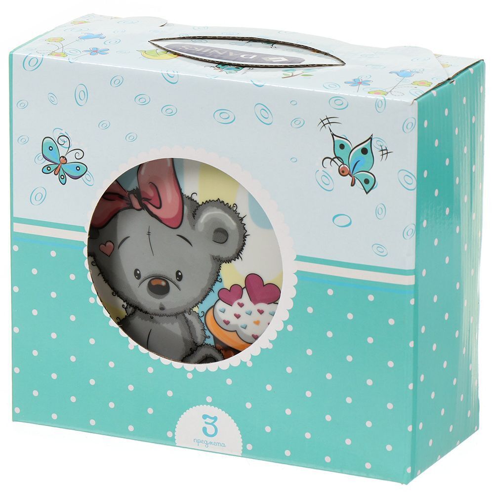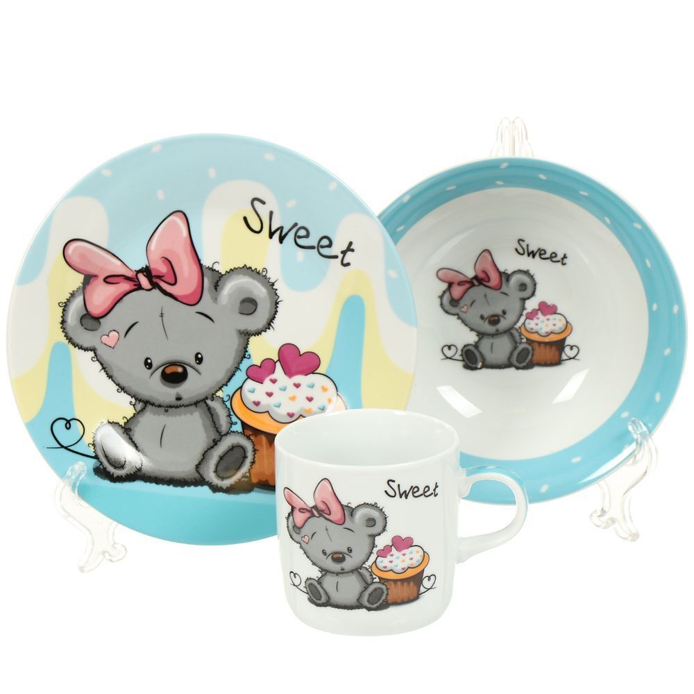Предметы набора выполнены из высококачественной керамики и декорированы красочным рисунком. Изделия легкие и функциональные. Такой набор обязательно понравится вашему ребенку, потому что теперь у него будет своя собственная посуда с ярким и оригинальным рисунком. Набор посуды для детей включает в себя три предмета: суповую тарелку, обеденную тарелку и кружку. Набор упакован в красочную, подарочную упаковку.