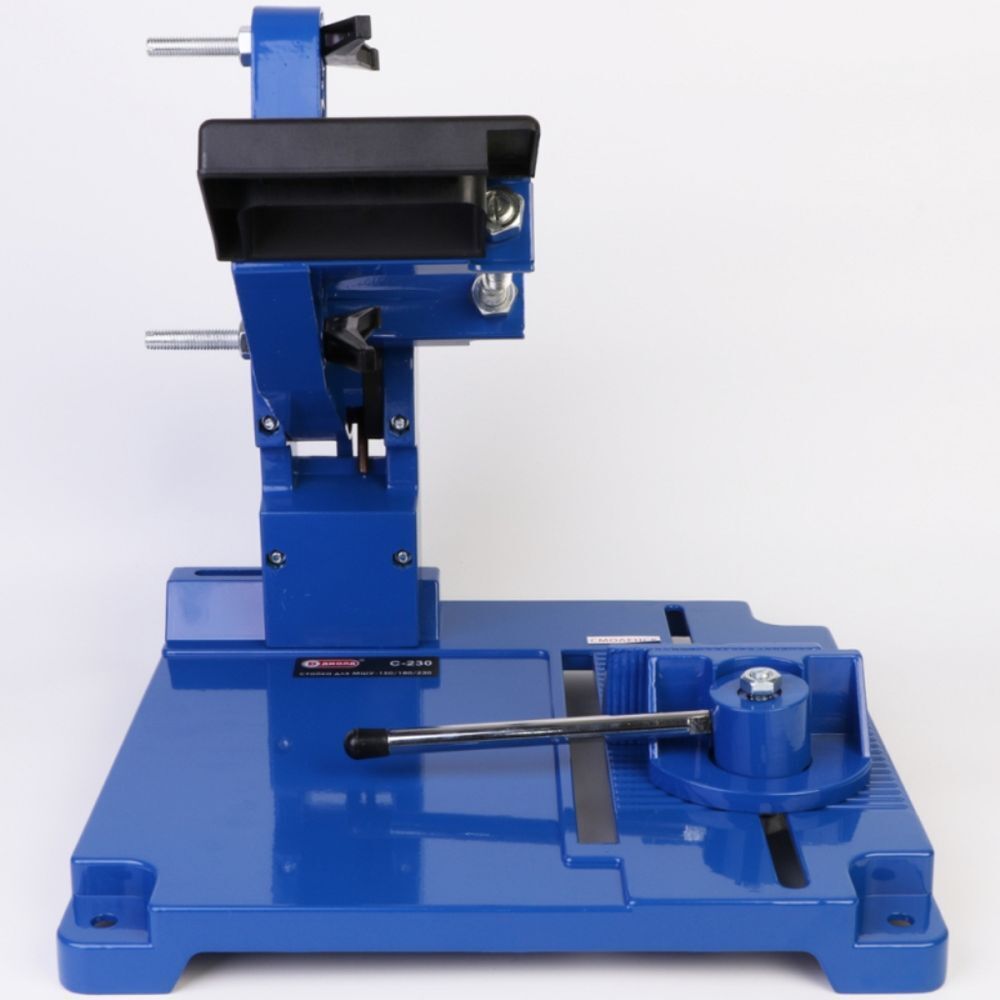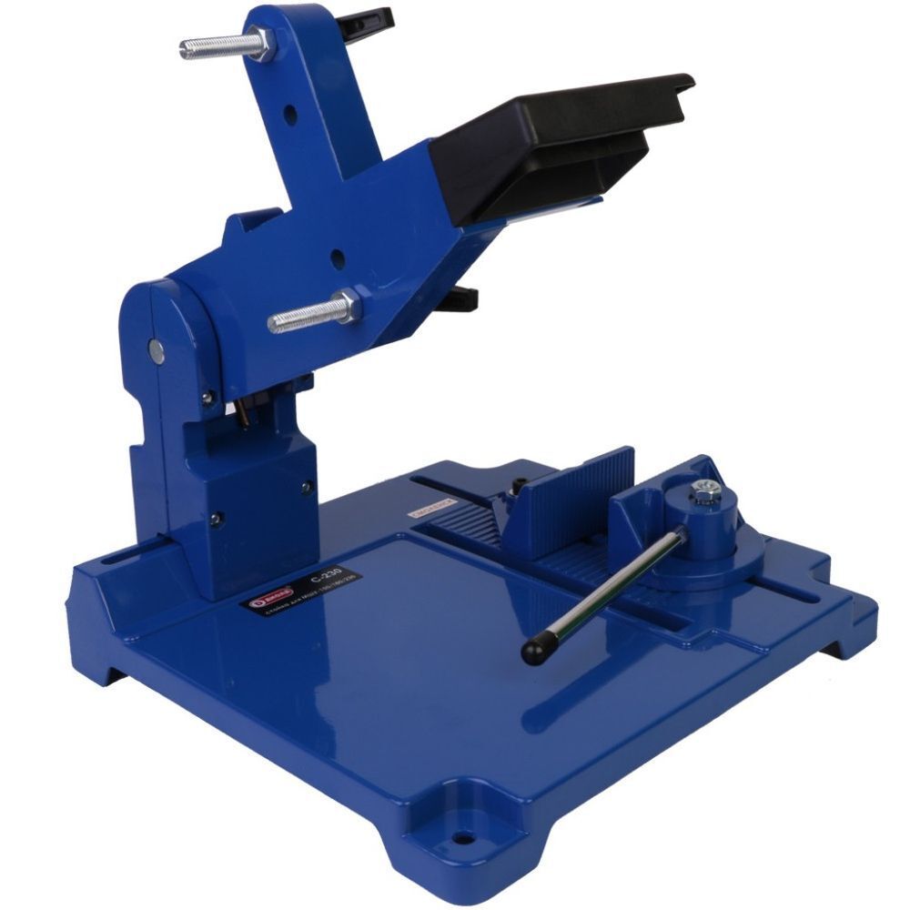 Стойка для машин шлифовальных угловых является стационарным приспособлением для крепления машин шлифовальный угловых с номинальным диаметром шлифовального отрезного круга от 150 мм до 230 мм включительно. Использование стойки позволяет быстро и точно разрезать под прямым углом и с наклоном до 45° труб, профилей, полос из металла и других материалов в зависимости от используемого шлифовального отрезного круга.