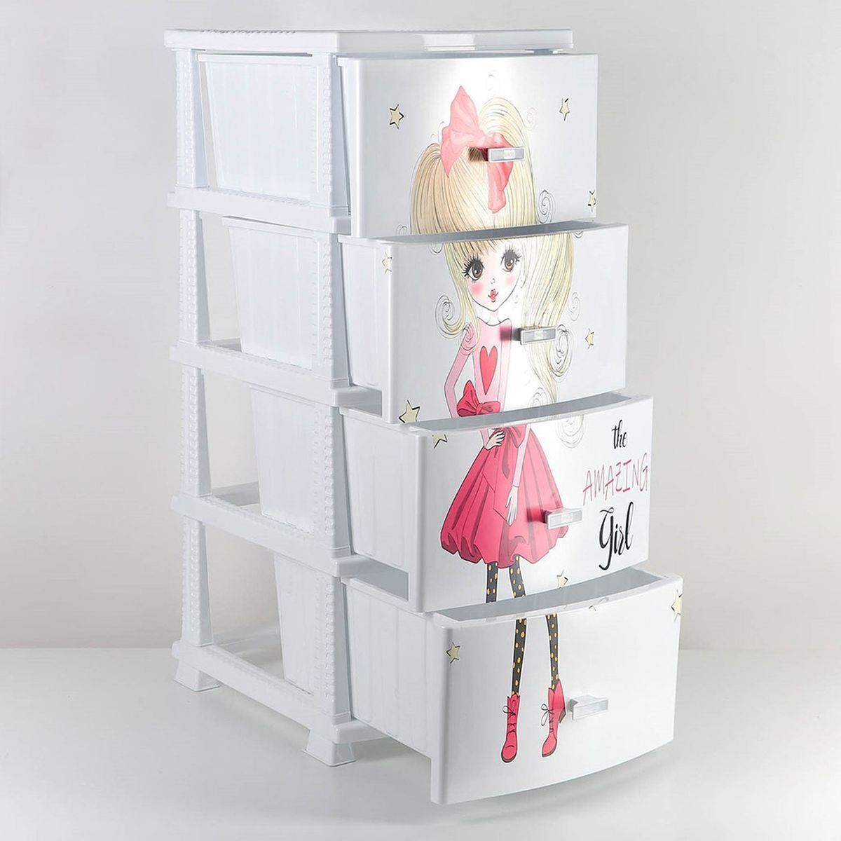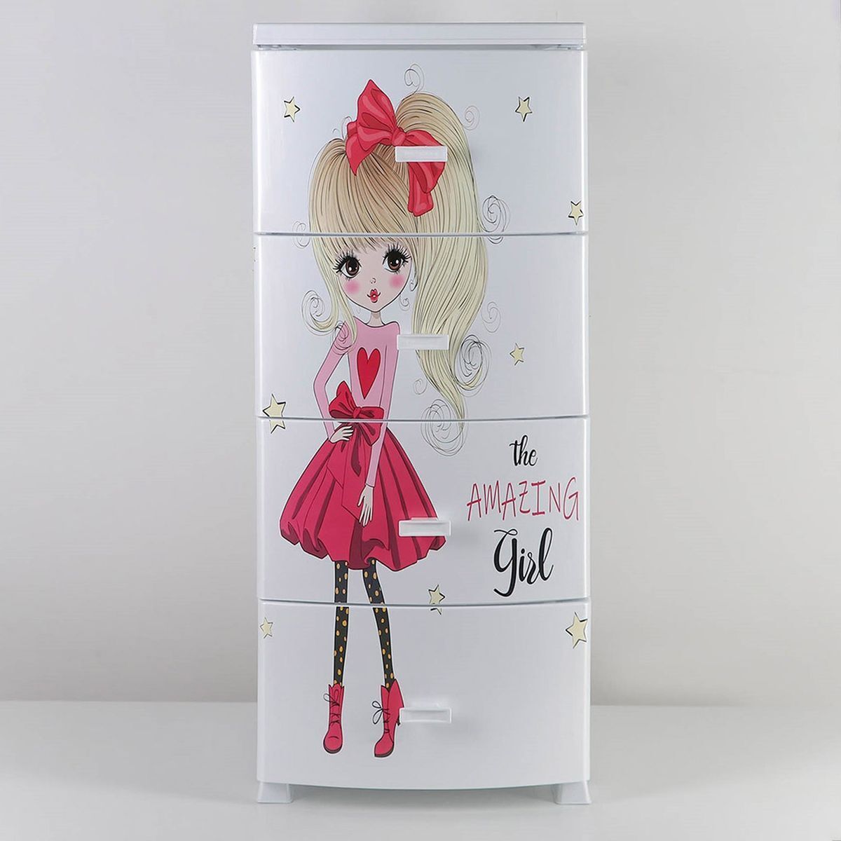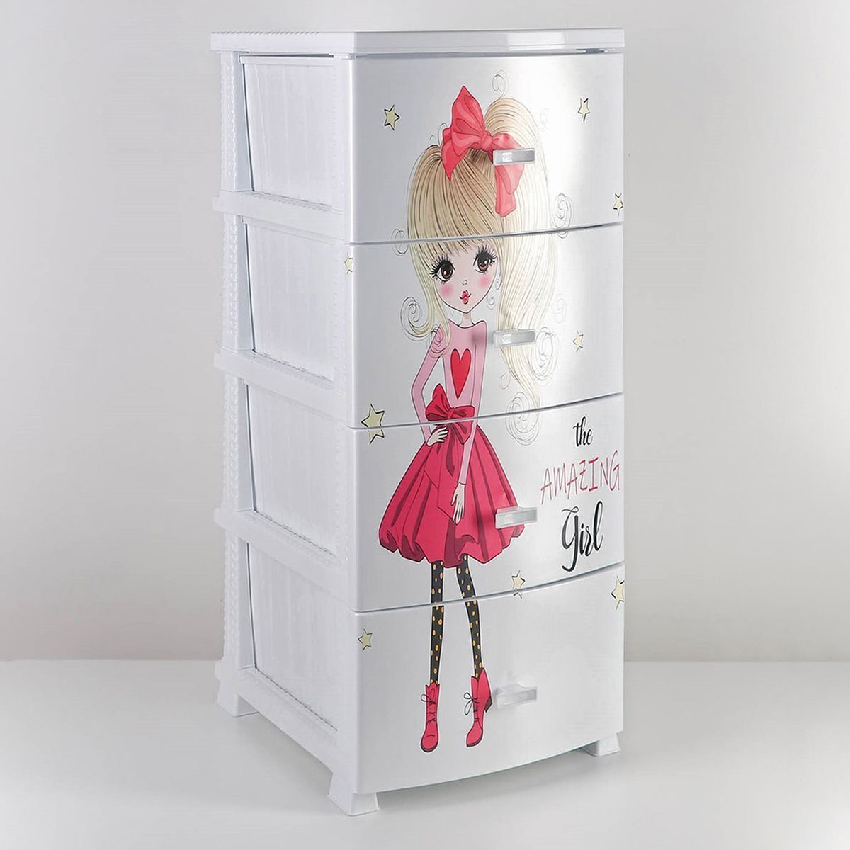 Комод детский 4 ящика, Красотка, 38х47х98 см, бел, Росспласт, РП-451