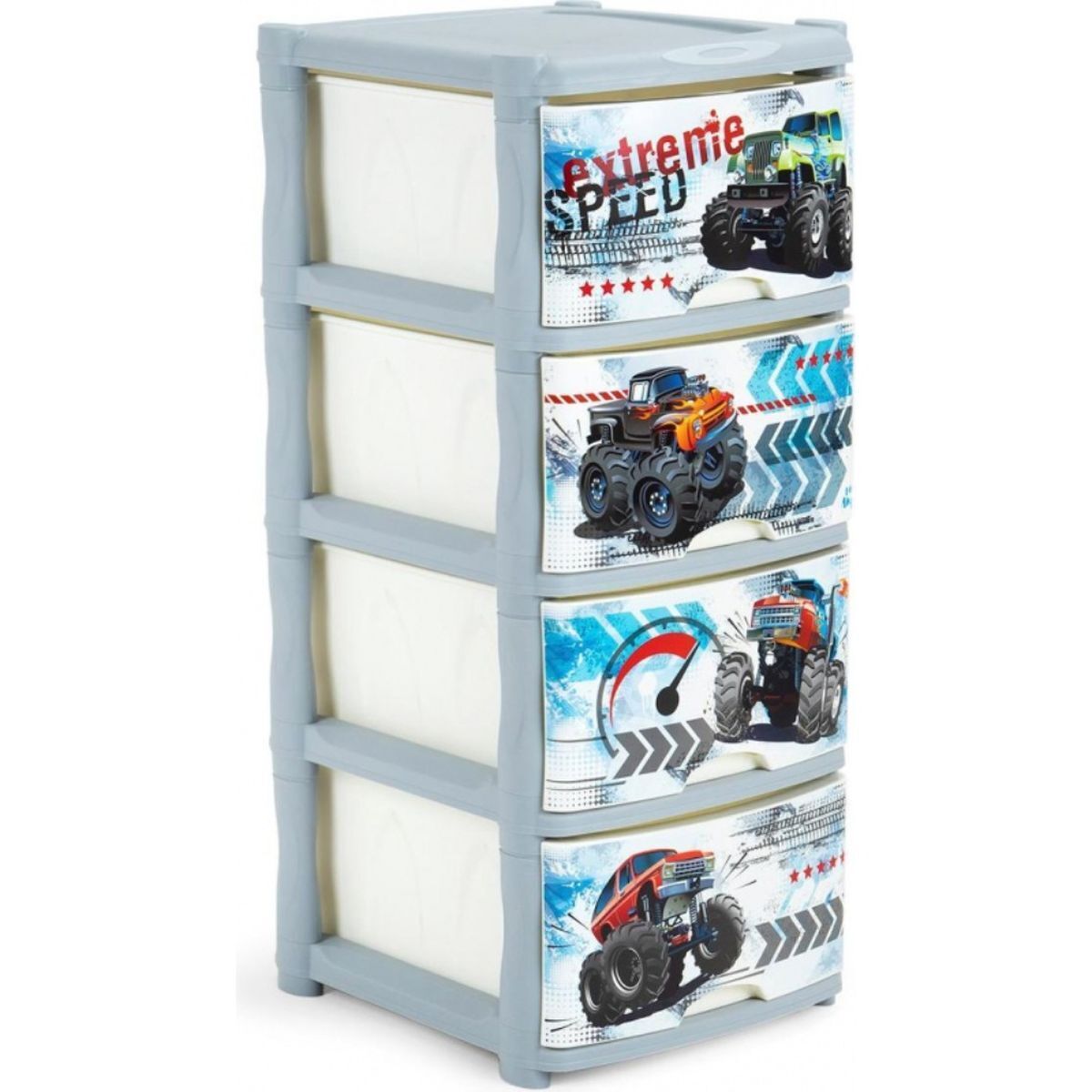 Комод поможет правильно организовать пространство в доме и сэкономит место. В нем можно хранить все, что угодно: одежду, обувь, детские игрушки, необходимые мелочи. Сглаженные углы и облегченная конструкция комода безопасны даже для самых активных малышей. Декор с внедорожными автомобилями станет отличным дополнением детской комнаты смелого мальчишки.