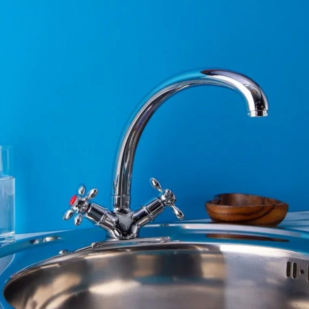 Смеситель Торговой марки BOOU – стильная двуручковая модель для кухонной мойки. Трубчатый излив в форме буквы J удобен для наполнения высоких емкостей и мытья габаритной посуды. При необходимости он поворачивается на 360°, высвобождая пространство над мойкой для выполнения бытовых задач.