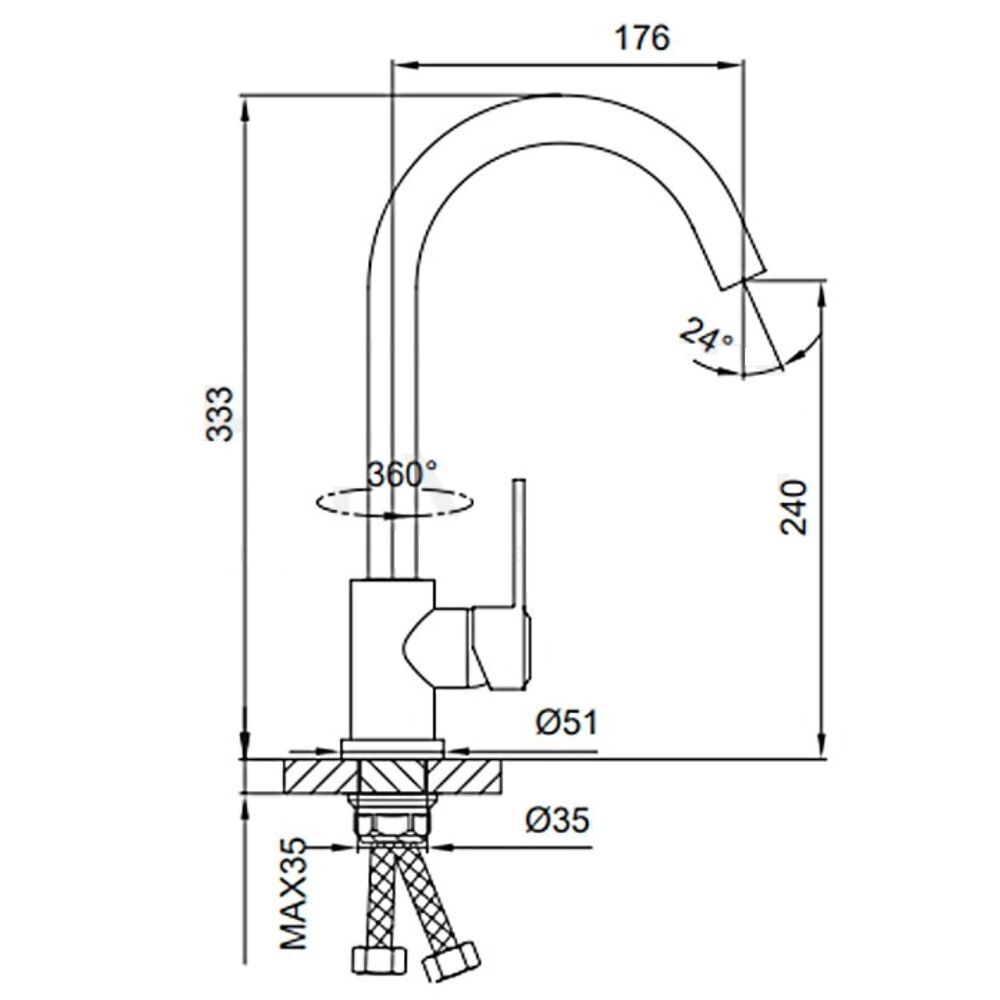 В комплекте: Гибкая подводка 1/2