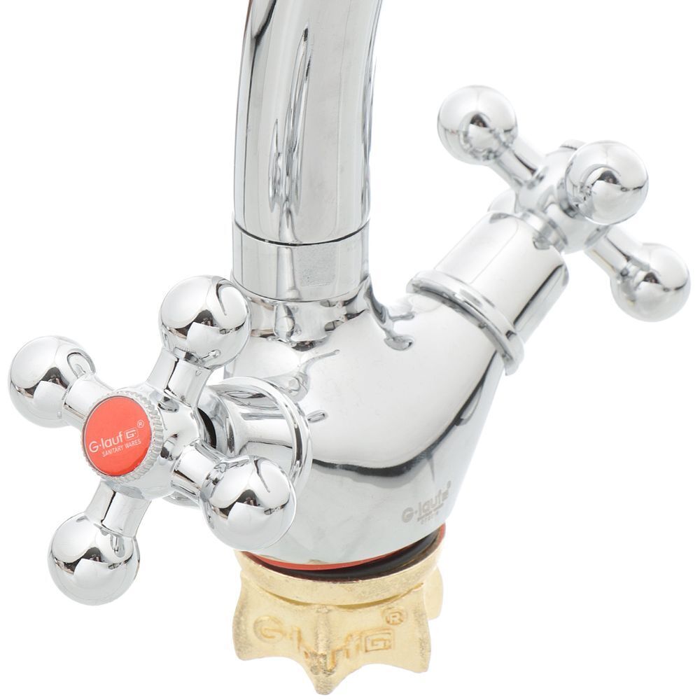 Смеситель для мойки GLAUF изготовлен по новейшей технологии литья под давлением. Образцовое качество поверхности и внутренней геометрии изделия.