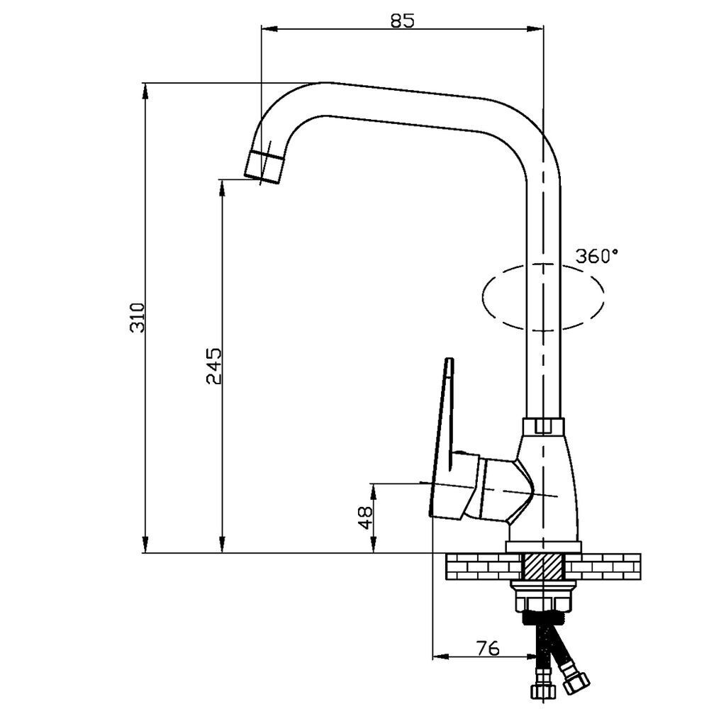 Смеситель с гибкой подводкой "РМС", предназначенный для смешивания холодной и горячей воды, устанавливается на кухонную мойку. Выполнен из высококачественной латуни, обладает повышенной прочностью, коррозионной стойкостью, твердостью и устойчивостью к щелочам и разбавленным кислотам.