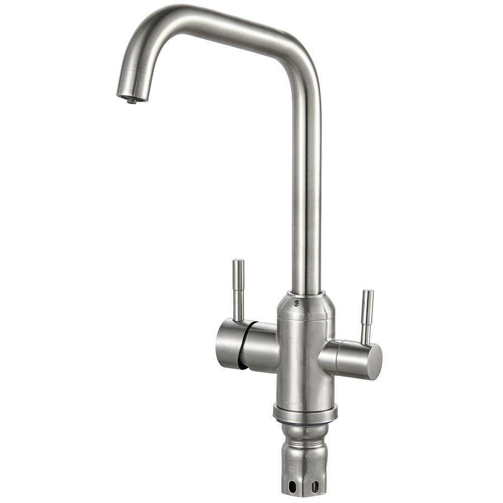 Смеситель "РМС", предназначенный для смешивания холодной и горячей воды, устанавливается на кухонную мойку. Корпус из нержавеющей стали устойчив к агрессивным средам, кислотам и щелочам.