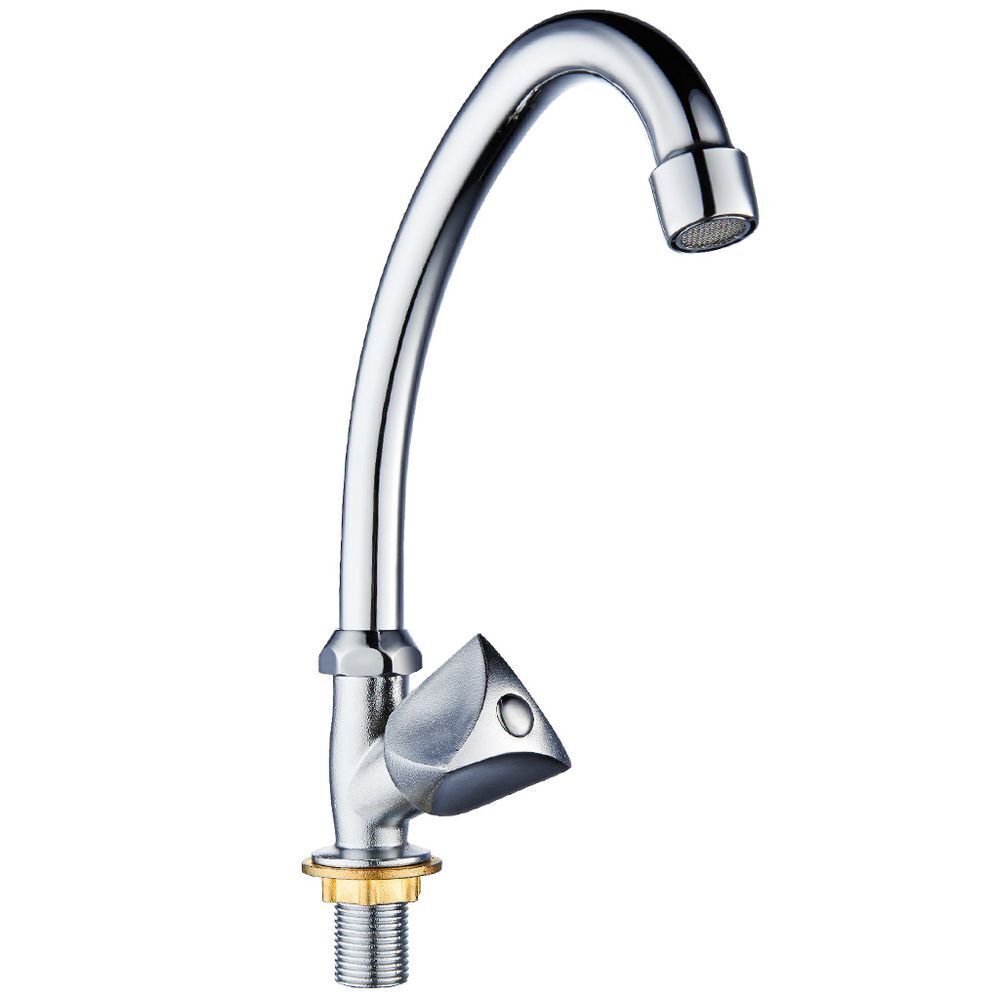 Одноручковый смеситель для кухни "РМС" предназначен для подачи холодной воды, устанавливается на мойку. Выполнен из высококачественной латуни повышенной прочности, устойчивой к коррозии. Оснащен высоким поворотным изливом. Кран-букса латунная с керамическими пластинами, угол поворота 90°. Крепление на гайку. Аэратор выполнен из пластика.