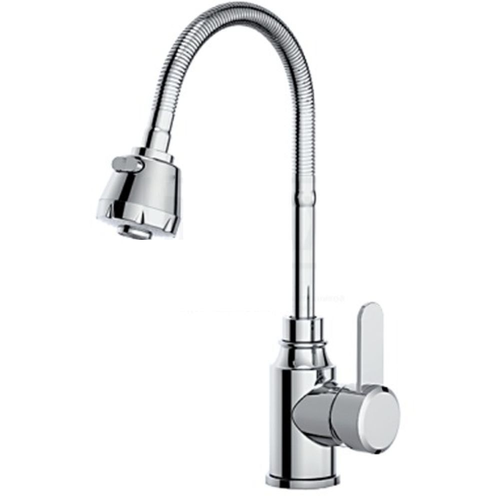 Frap смеситель для мойки с гибким изливом, излив высокий, поворотный, однорычажный керамический катридж 35мм, крепление на гайке, гибкая подводка 35 см.