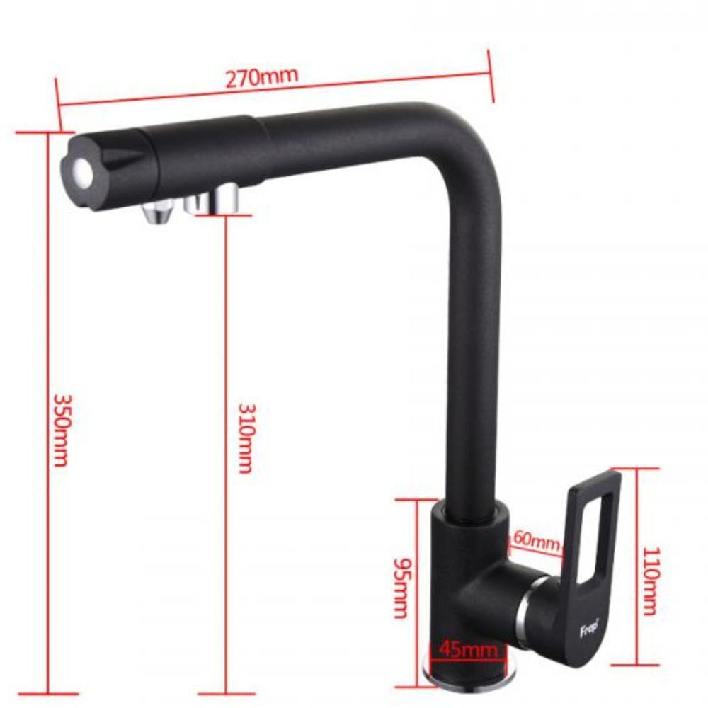 Обратите внимание на поворотный смеситель для кухни с подлючением фильтра для воды Frap F4352-7. Удобство этой модели заключается в том, что в одном корпусе с современным дизайном конструкторы поместили обычный смеситель с подведением горячей и холодной воды и смеситель от фильтра для питьевой воды. Вам нет необходимости делать дополнительное отверстие под кран с питьевой водой.