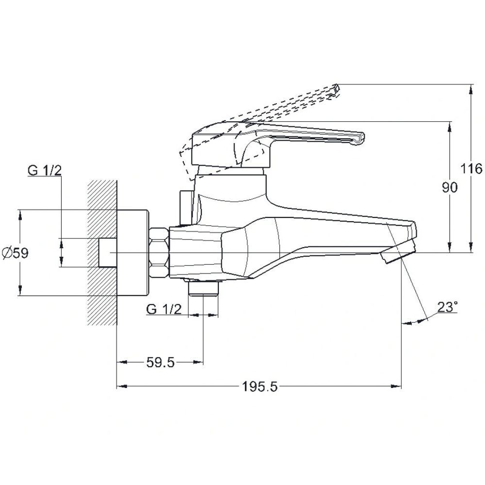 Переключение ванна/ душ: встроенный картриджный дивертор (90°)