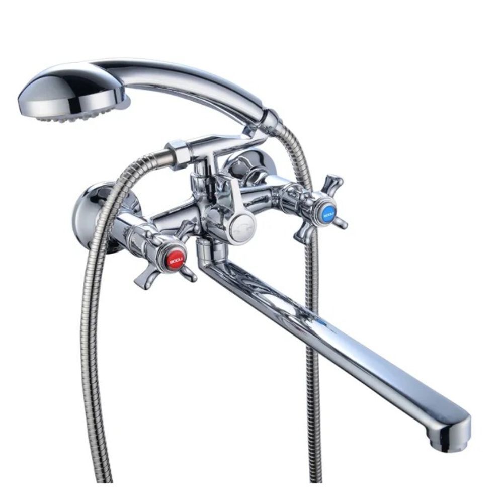 Универсальный смеситель с двумя рукоятками ТМ BOOU избавит от лишних трат и поможет освободить место в ванной комнате. Модель оснащена длинным прямым изливом, что позволяет удобно использовать его над раковиной и прилегающей к ней ванной. В комплекте удобная трехрежимная лейка с гибким шлангом и настенный держатель.