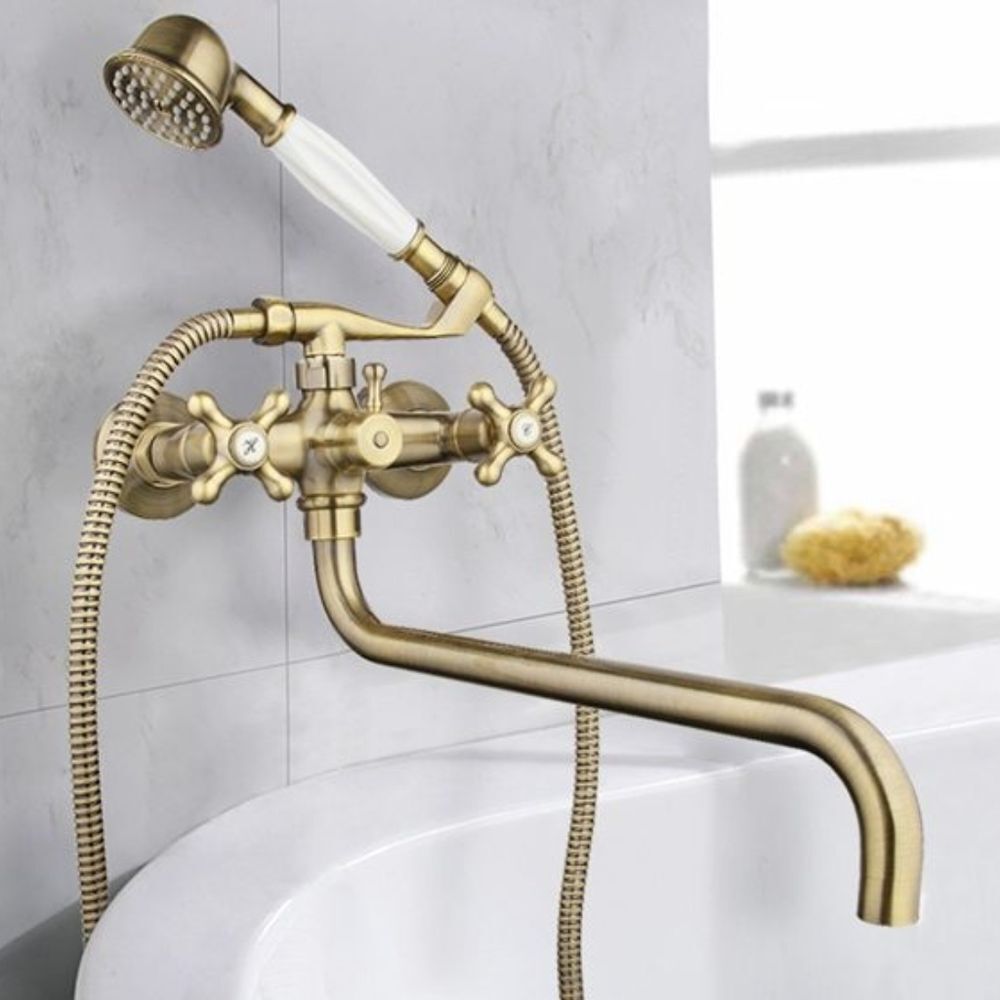 Двухвентильный смеситель серии Sofia для ванны G2263-4 GAPPO с переключателем в корпусе изготовлен из латуни в цвете бронза. Оборудован изливом (длина 350 мм), металлическими крестообразными рукоятками и поворотным переключателем дивертора. Кран-букса с керамическими пластинами (угол поворота 180 градусов). В комплекте однорежимная душевая лейка с держателем на корпусе, шланг (1500 мм) вращается на 360 градусов, аэратор.