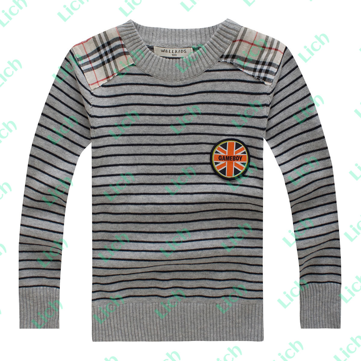 Свитер детский в полоску с клетчатыми плечами