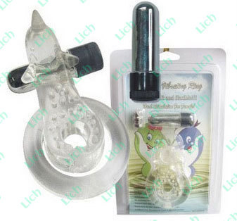 Прозрачное эрекционное кольцо с вибрацией и дельфинчиком для стимуляции клитора