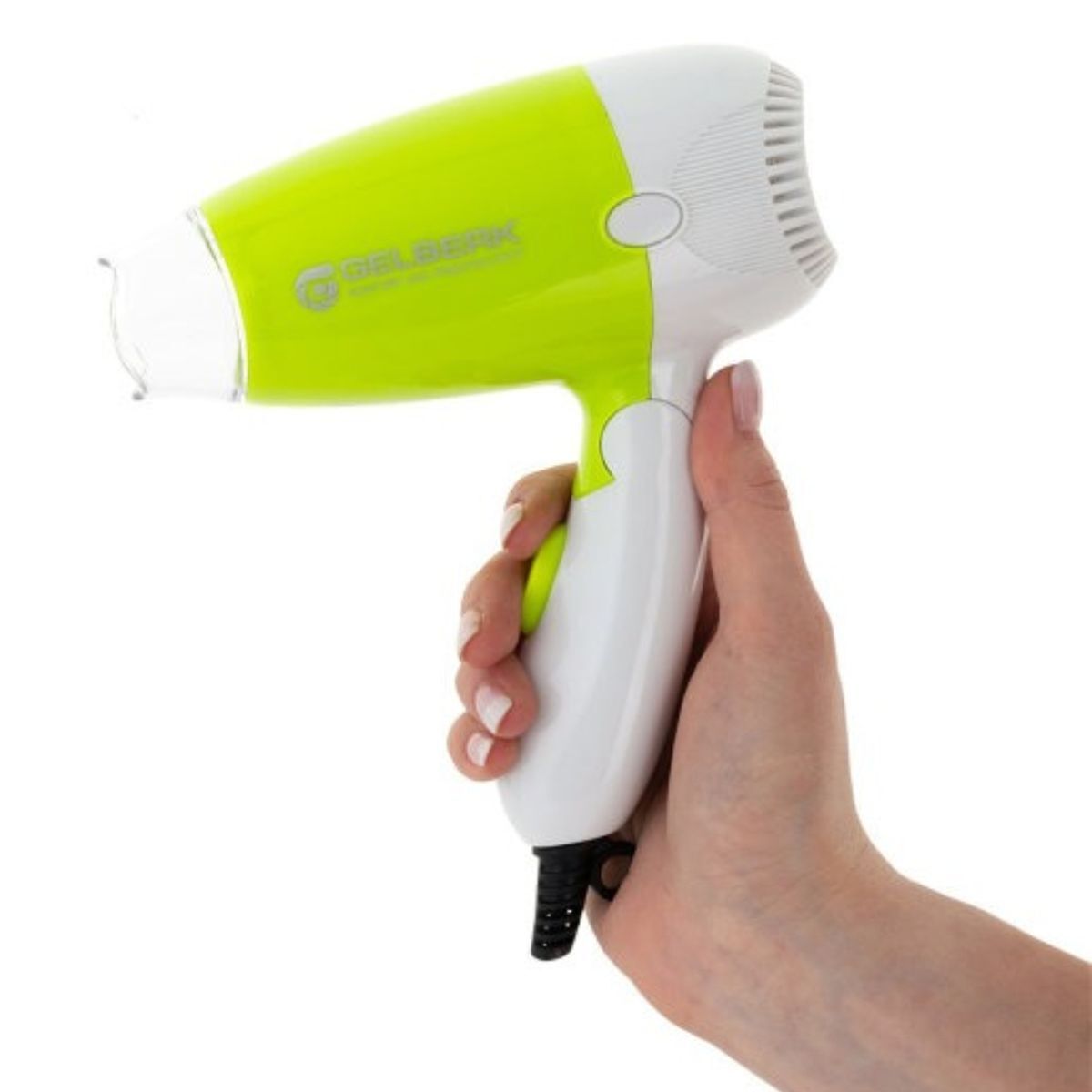 Фен Gelberk GL-627 отличается невероятной компактностью и без труда поместится в любую сумку. Ручка складывается, что позволяет брать такое устройство с собой на отдых, в командировки или на тренировки. Корпус модели выполнен в белой расцветке, дополненной яркими зелеными элементами.