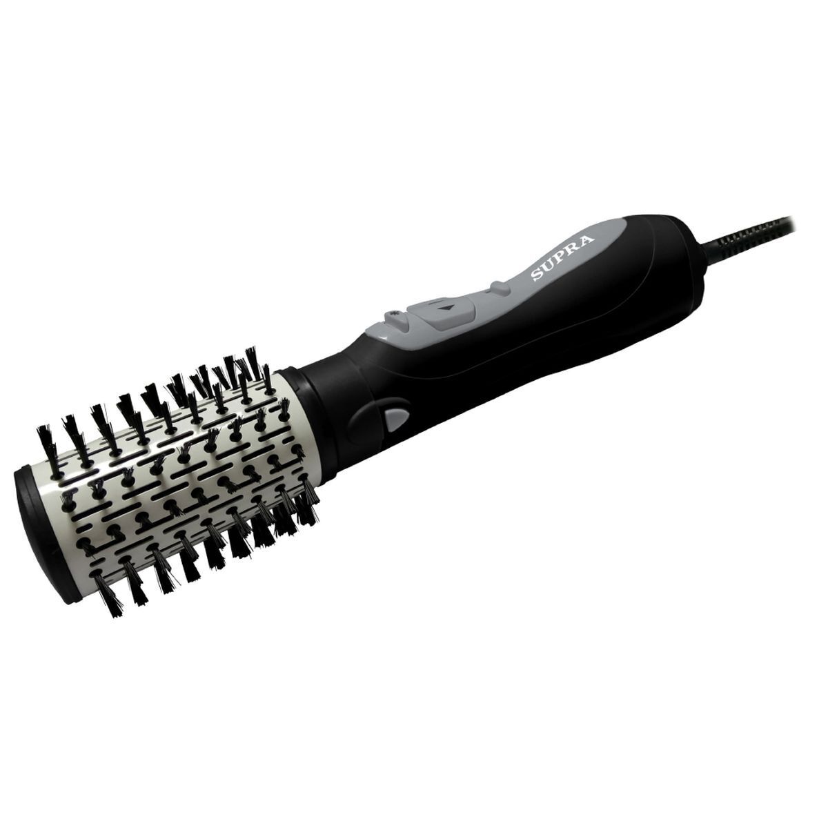 Фен-щетка SUPRA PHS-2024N с керамическим покрытием, щеткой 50 мм, вращением в обе стороны, 2-мя режимами и холодным обдувом поможет вам привести в порядок свои волосы как дома или на даче, так и поездках в командировку или в отпуск. Модель объединяет круглую щетку и фен в одно устройство. Наша модель отлично справится с приданием формы и объема прическе и подойдет для всех типов волос. Мощность фена составляет 1000 Вт. Ее вполне достаточно, чтобы высушить и красиво уложить волосы в домашних условиях, а 2 температурных режима и функция «Холодный обдув» позволят красиво уложить даже самые непослушные локоны. Помимо этого функция "холодного обдува" служит для фиксации укладки и спасет волосы от пересушивания и ломкости. Для удобного использования наш фен-щетка оборудован автовращением в обе стороны. При перемещении из одной руки в другую или вокруг головы вам не придется делать лишних движений, достаточно переключить кнопку выбора направления вращения. Полезная функция «защита от перегрева» отключит прибор, если он перегреется во время использования. Длина шнура 1,78 м позволит использовать фен в любом удобном месте, особенно если розетка располагается достаточно далеко от зеркала. Шнур вращается по принципу шарнира на 360 градусов. Для удобного хранения на ручке предусмотрена петля для подвешивания.