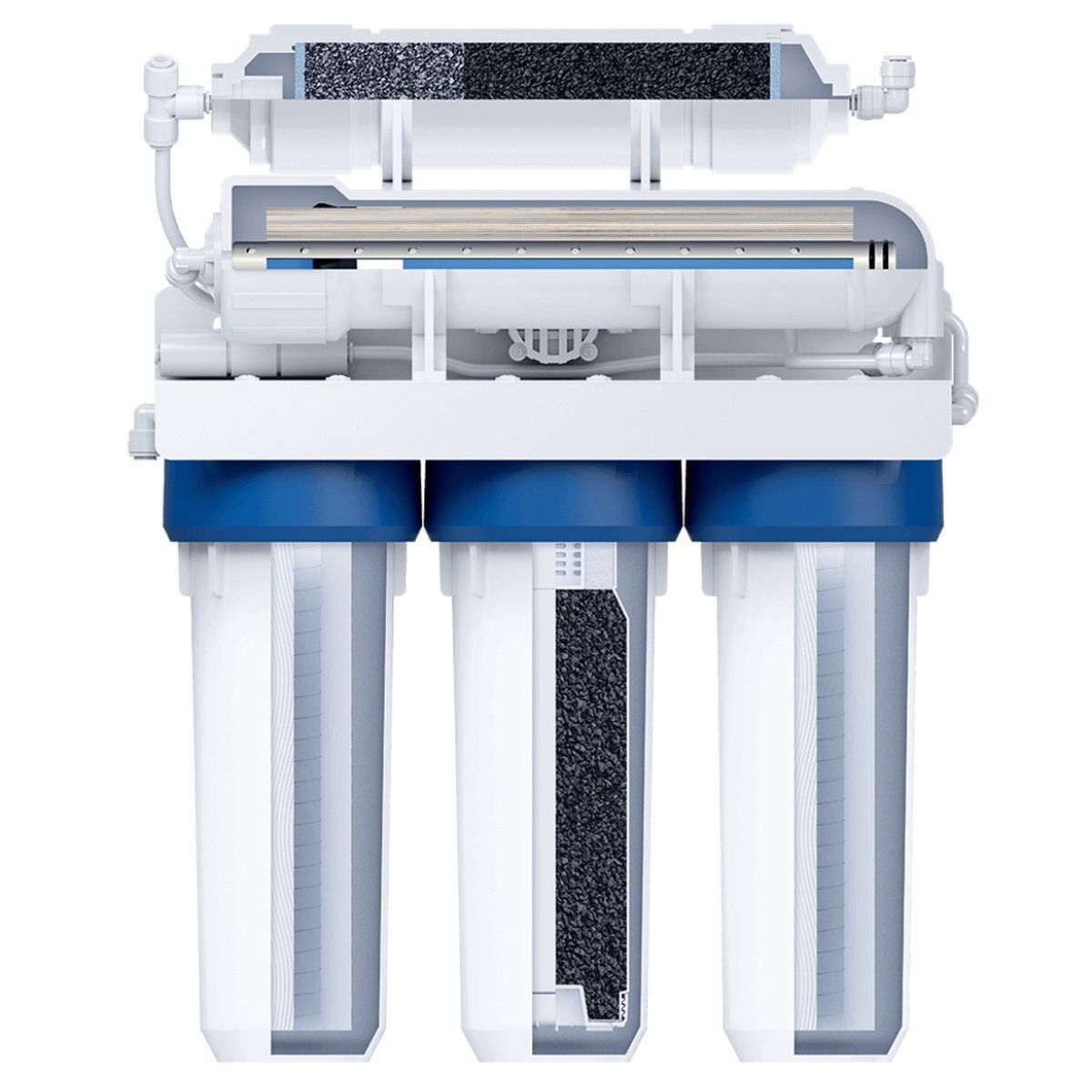 Фильтр является отличным умягчителем воды, который навсегда избавит вас от накипи. Диаметр пор мембраны настолько мал, что они пропускают только молекулы воды, задерживая даже бактерии и вирусы.