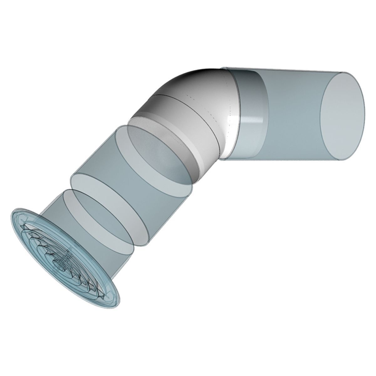 Колено круглое Эра 12,5ККП предназначен для соединения воздуховодов соответствующего диаметра под углом 45 градусов. Соединение осуществляется напрямую с воздуховодами.