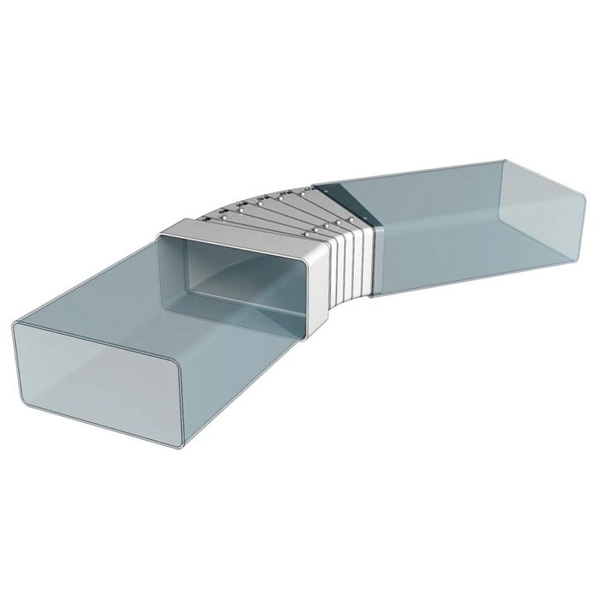 Колено разноугловое горизонтальное ERA 612КРП предназначено для соединения воздуховодов соответствующего сечения под углом от 3 до 48 градусов. В зависимости от выбранного угла одна сторона соединителя подрезается. C каналами соответсвующего сечения соединяется напрямую.