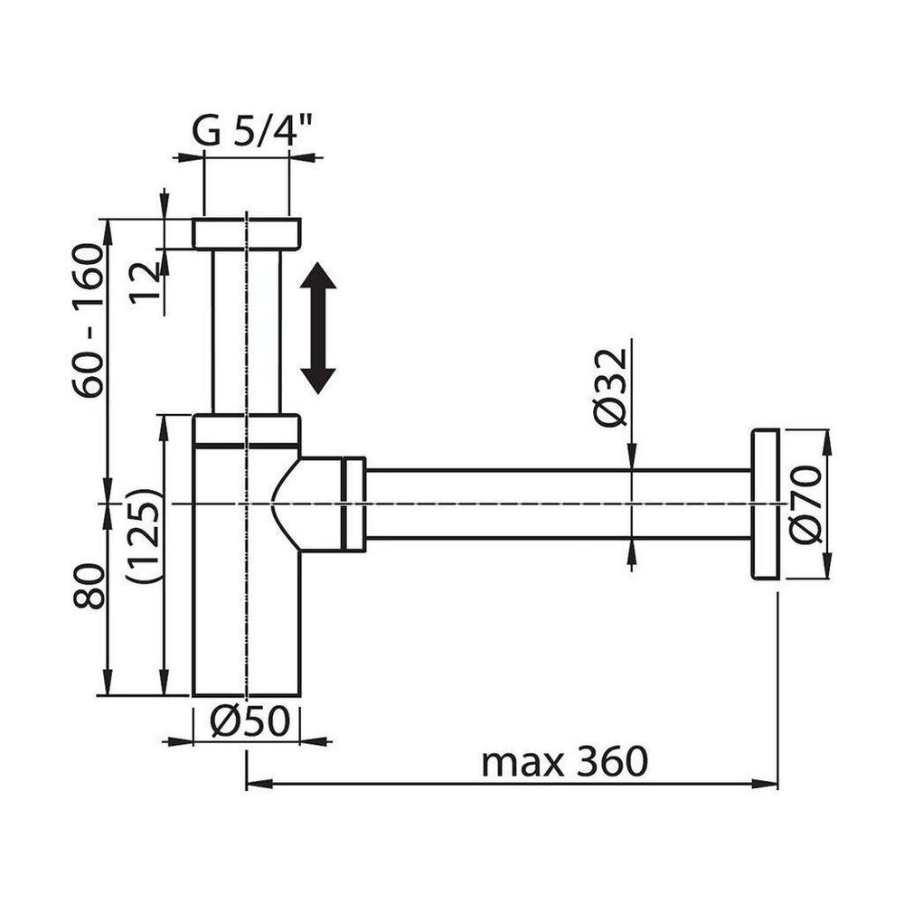 Диаметр подсоединения к канализационной трубе 32 мм.