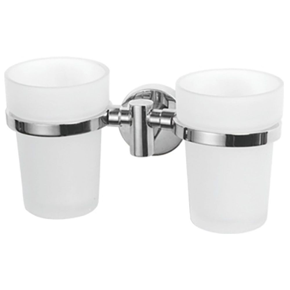 Стакан двойной стеклянный, настенный. Держатель для зубных щеток с двумя стаканами. Стаканы съемные, выполнены из матового стекла, которые по необходимости можно легко снять с хромированного держателя и помыть. Имеет специальное хромированное покрытие, которое защищает изделие от влаги и придает ему блестящий внешний вид.