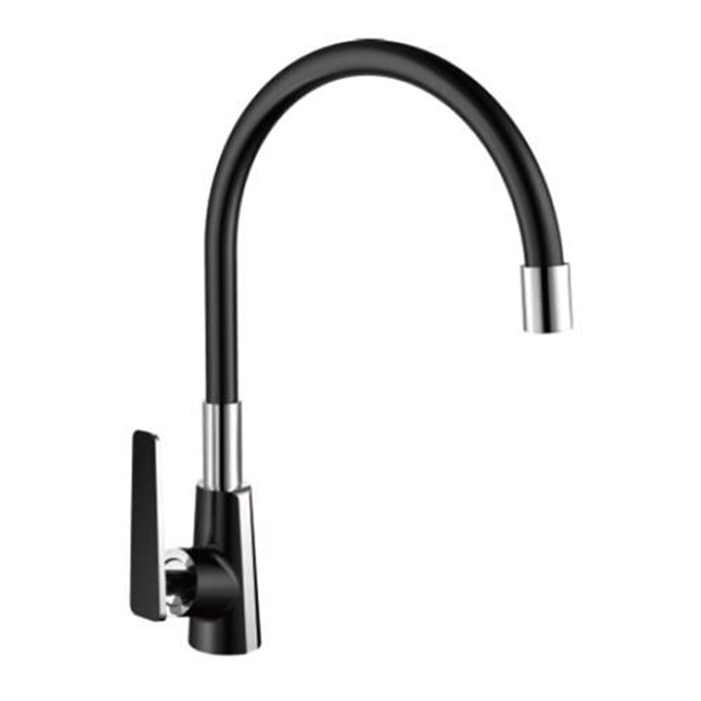Смеситель для кухни с гибким силиконовым изливом Frap F4457, модель позволяет регулировать температуру и напор воды посредством однорычажного управления.