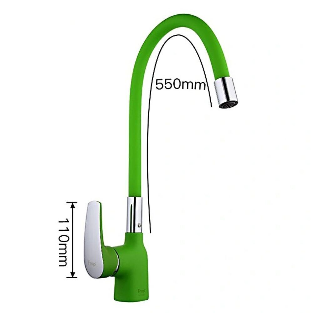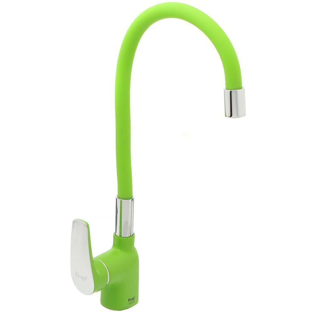 Frap смеситель для кухни, с гибким гусаком и лейкой, однорычажный, катридж 35 мм, корпус латунный, покрытие зеленый/хром, крепление на гайке, гибкая подводка 35 см.