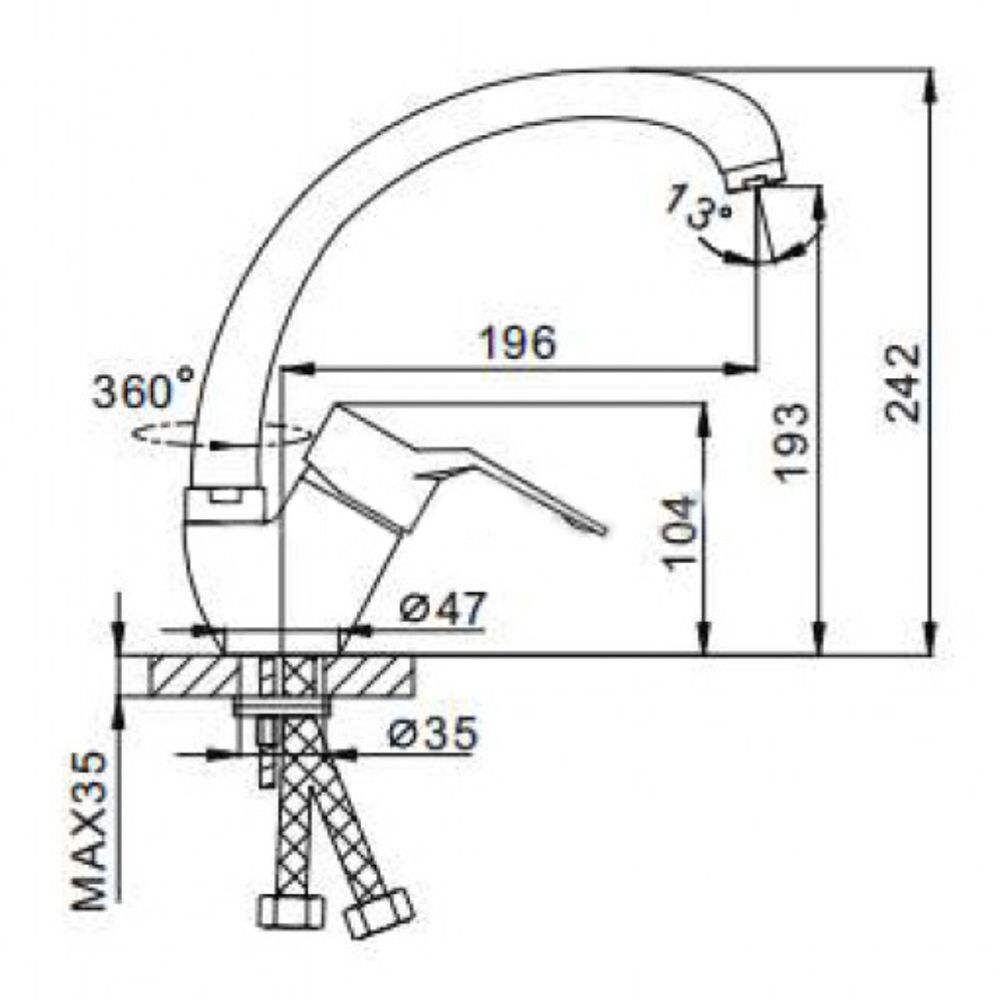 Frap смеситель для мойки, излив высокий, поворотный, однорычажный керамический катридж 40 мм, крепление на шпильках, корпус латунный, покрытие хром, гибкая подводка 35 см.