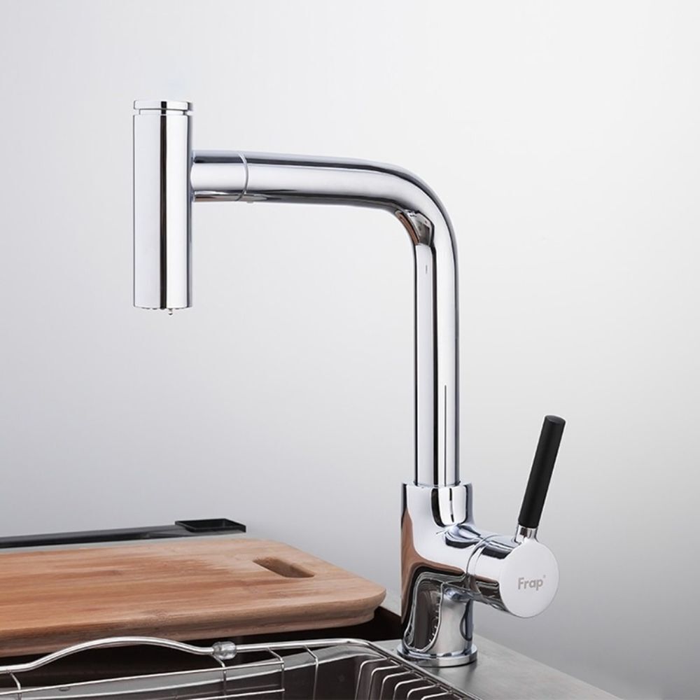Frap F6044 — это качественный смеситель для кухни, обладающий приятными формами, одонрычажным управлением и органичным дизайном. Благодаря этому данная модель будем гармонично смотреться в любом современном кухонном интерьере.