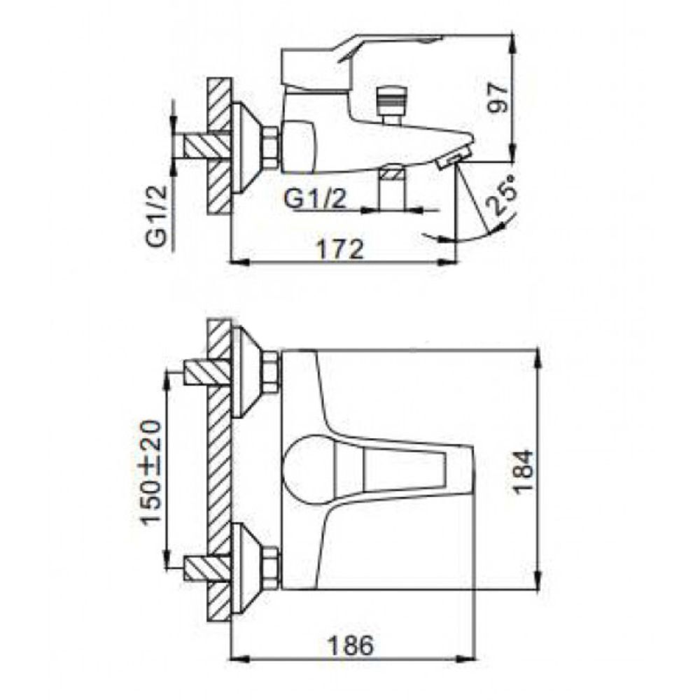 В комплекте: душевой шланг 150 см, душевая лейка, держатель лейки, комплект отражателей, комплект эксцентриков