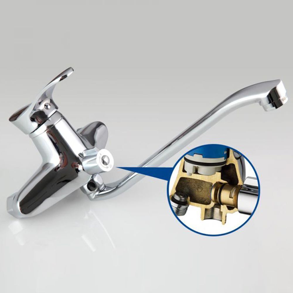 Керамический картридж 40 мм обеспечивает точную настройку температуры и напора воды.