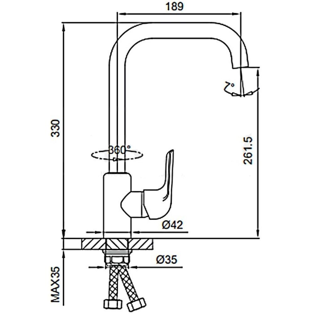 В комплекте: Гибкая подводка 1/2