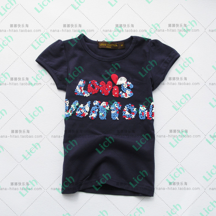 Футболка однотонная с надписью Louis Vuitton из сердечек