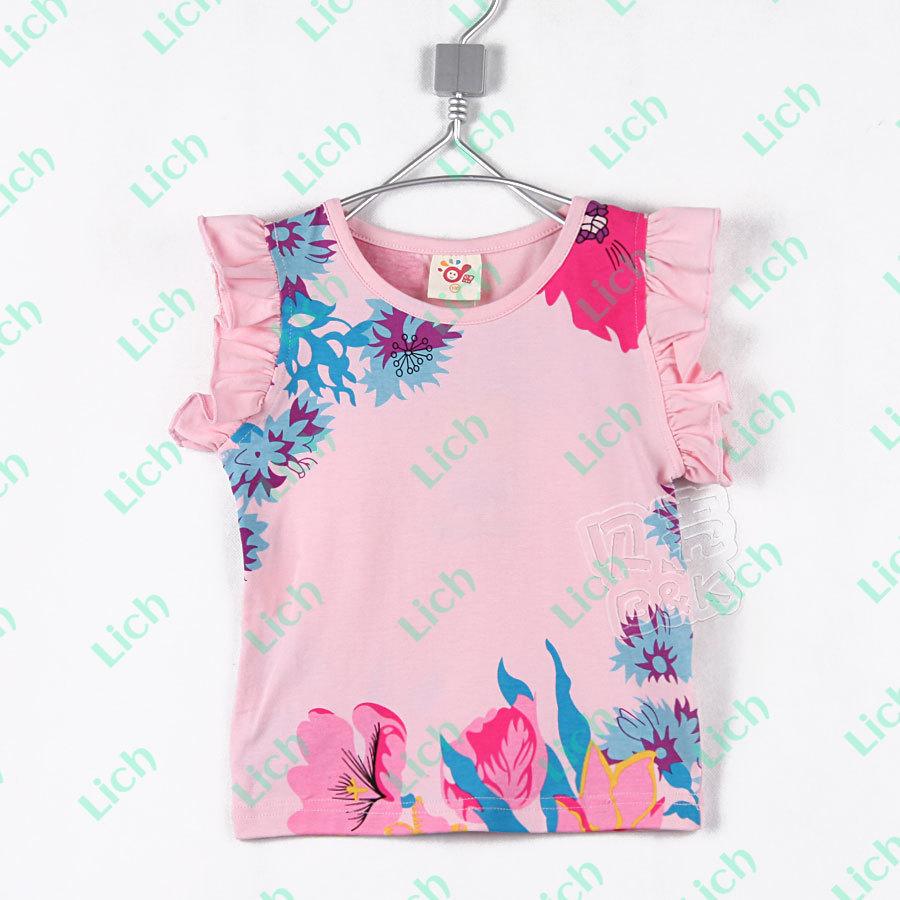 Футболка с контрастными принтами цветов и рукавами-воланами